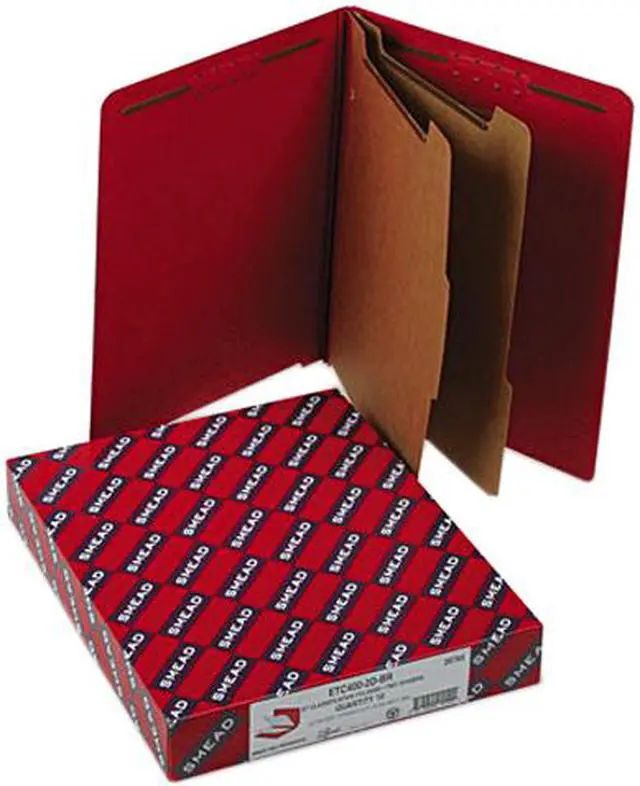 Protect your documents and fingers with SafeSHIELD® coated fastener technology—the ultimate solution to fastener issues, including paper tears, finger cuts and excessive fastener crinkling. Folder: 23 pt. pressboard covers with straight cut tabs (labels sold separately). Two 2" SafeSHIELD® bonded-style coated fasteners in positions no. 1 and 3. Divider: 17 pt. Kraft dividers. 1" SafeSHIELD® coated twin-prong fastener front and back. This product was made using wood sourced from a certified managed forest. Classification Folder Type: End Tab; Size: Letter; Number of Sections: 6; Cover Material(s): 23 pt. Pressboard.