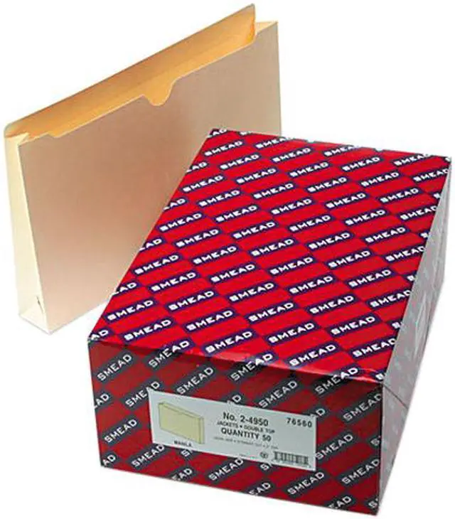 Manila file jackets feature full-height gussets to keep materials from slipping out. The 1/2" high, two-ply reinforced, straight-cut tab with thumb-cut design allows easy access. Legal-size file jackets expand 2" and are made of 11 point stock.
