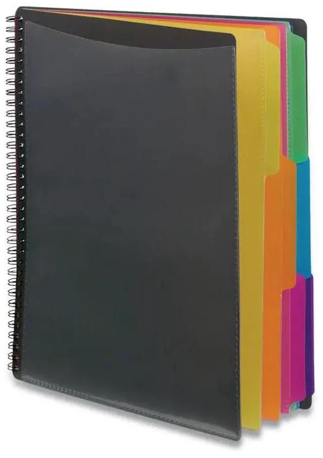 - PRACTICAL DESIGN: The slash pockets with 1/3-cut tabs can hold up to 25 sheets each; the spiral-bound design allows the organizer to lay flat for easy use; tear-resistant and water-resistant poly cover material ensures long-lasting durability.