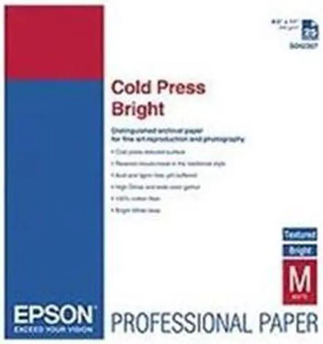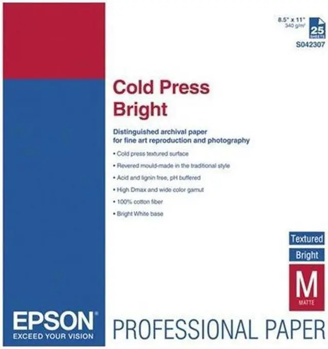 Epson Cold Press Bright Fine Art Paper 8-1/2 x 11 Bright White 25 Sheets S042307