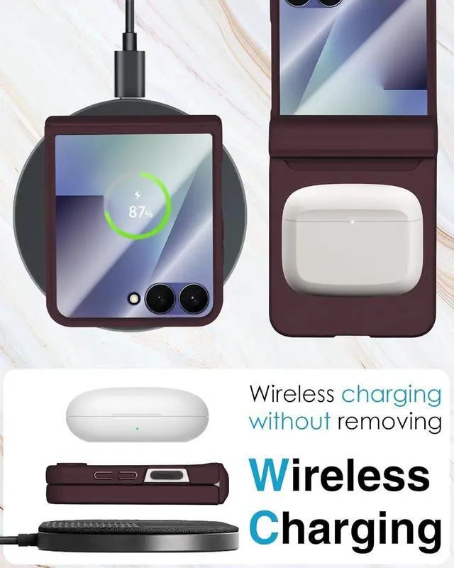 [Slim and Lightweight Design] Our Galaxy Z Flip 7 case features an ultra-thin, lightweight profile that doesn't add any bulk to your phone. This Z Flip 7 case enhances your grip, reducing the likelihood of accidental drops while maintaining the phone's original elegance. Plus, this Z Flip 7 case supports wireless charging, so you never have to remove the case for charging.