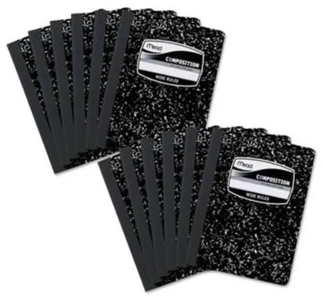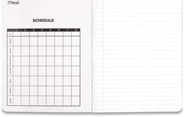 Durable black marble cover with modern nameplate and secure sewn binding. Class schedule grid on inside front cover. Multiplication table, conversion table and grammar rules on inside back cover. Pocket-Sized Indicator: N; Book-Binding Type: Sewn; Book-Binding Edge: Side; Cover Color: Black.
