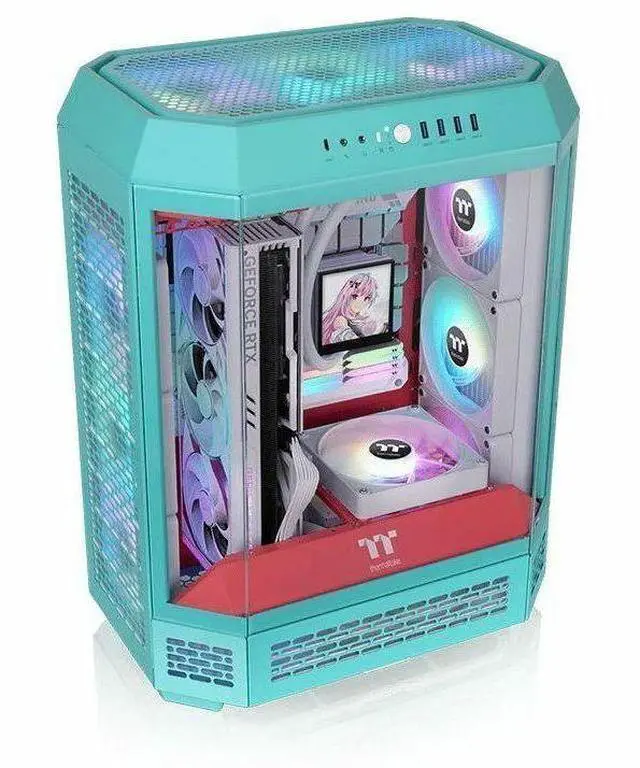 Thermaltake Tower 600 Mid Tower; 2x140mm CT Fans Included; 420mm Radiator Support; 400mm GPU Clearance; Hidden Connector Support; Rotatable PCIe Slots; Mint Strawberry; CA-1Z1-00MLWN-00