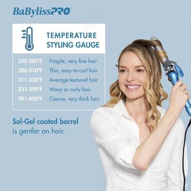 For the waves of the future- choose Nano Titanium 1.25 in. Spring Curling Iron! This iron is engineered with advanced technology to create textured curls and waves. Nano Titanium is an exceptional conductor of heat and maintains stability in ultra high temperatures. It yields maximum far-infrared heat- penetrating the hair shaft from within for professional styling without damage. Sol-Gel technology makes the iron barrels 37% stronger and 22% smoother than those of standard irons. Sol-Gel nano titanium/ceramic barrel50 heat settings up to 450°FTurbo Heat button instantly boosts heat8-foot tangle-free swivel cord