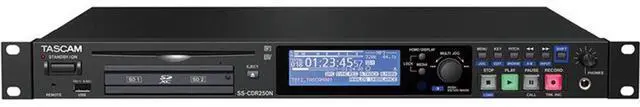 Features: Balanced and unbalanced analog I/O (XLR and RCA jacks) Record or dub to CD-R media @ 44.1 k/16-bitAES/EBU and S/PDIF digital I/OOptional IF-DA2 Dante card allows the unit to operate on a Dante audio networkSample rate converter on digital inputsRS-232C Serial and 25-pin parallel control portsRecords to SD Card or USB mediaAutomatic file close saves file every 2 seconds to prevent data loss if power is interrupted while recordingPre-record records the input buffer so that the start of a recording isn’t missedAuto cue and auto ready for instant track playback Get your Tascam SS-CDR250N Solid State Recorder today at the guaranteed lowest price from Sam Ash Direct with our 45-day return and 60-day price protection policy.