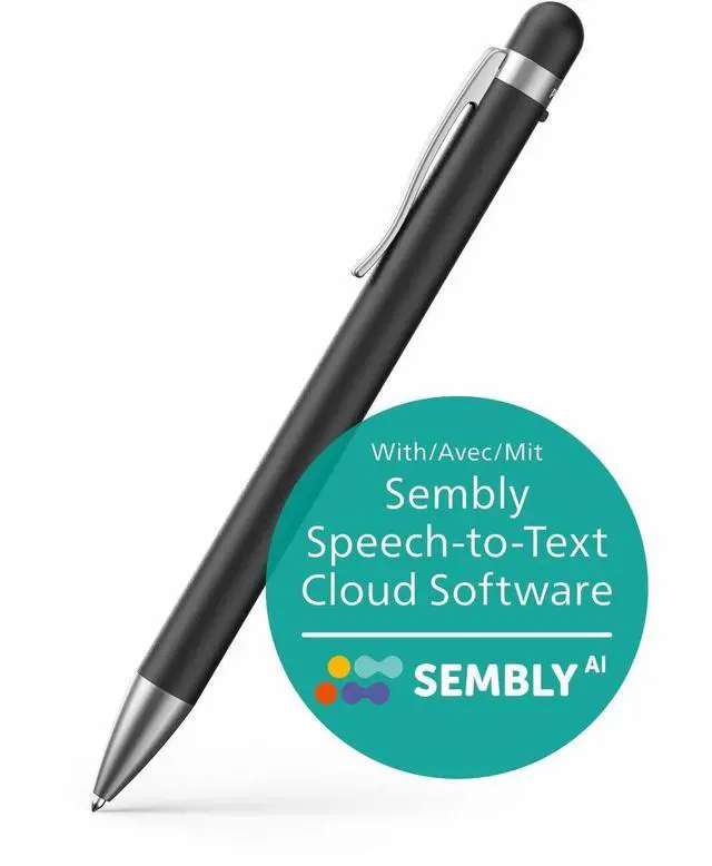 Capture every word in important meetings or conversations with the new Philips VoiceTracer Audio Recorder Pen. With its sleek design and easy-to-use functionality, the recording pen is the perfect companion in any situation. The pens built-in, 360° microphone is highly sensitive and can pick up voices in clear audio quality. Its perfect for recording conversations or just jotting down ideas on-the-go. Combined with Semblys AI Speech-to-Text Cloud Software, you can even turn your recordings into text quickly and accurately. Simply upload your files to Sembly when you are back at your computer and let it automatically convert your recordings to text for you. Recording Functions: Built-In Microphones; One-Touch Record; Activation Review Functions: One-Touch Record; Recording Time: 129 h; Microphone (Yes/No): Yes.
