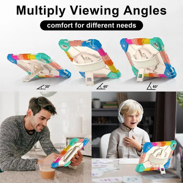 Adjustable Shoulder Strap : Adjustable shoulder grip can be slanted and release your hands completely. This function is perfect for traveling, restaurant ordering, home product introduction, engineer outdoor operation, scene of industrial construction,teacher, etc. Also, the strap allows you to hang up your tablet behind car seat for entertainment for kids.
