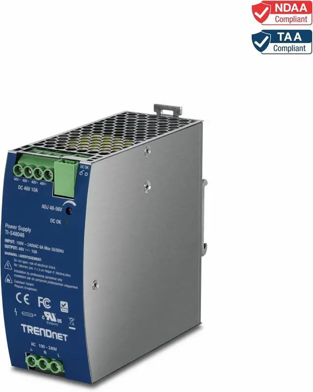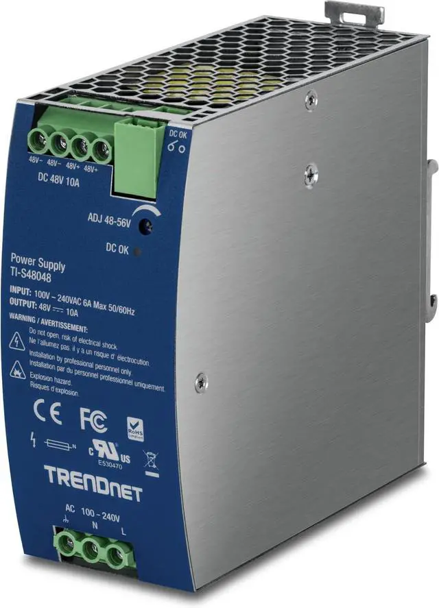 TRENDnet TI-S48048 480W, 48 56V DC, 10A AC to DC DIN-Rail Power Supply with PFC Function