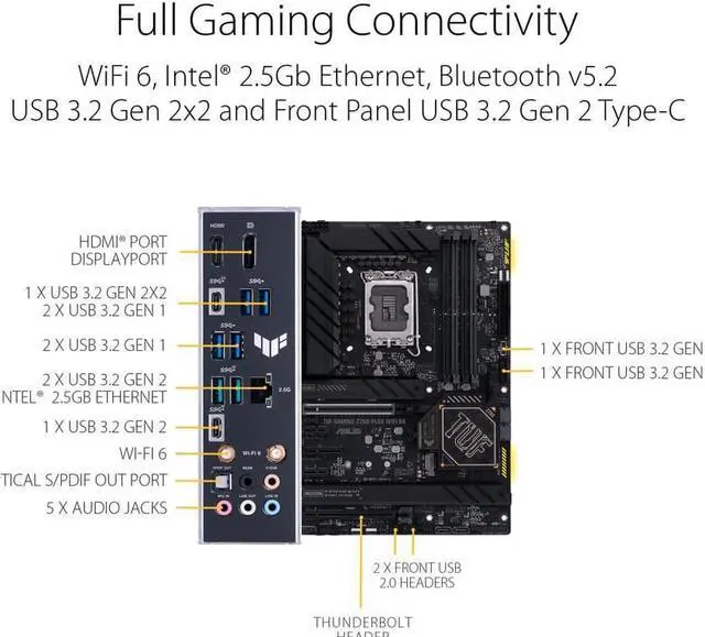 Ultra Fast Gaming Networking: WiFi 6 AX201 ( 802.11 ax), Intel I225-V 2.5G b LAN, TUF LAN