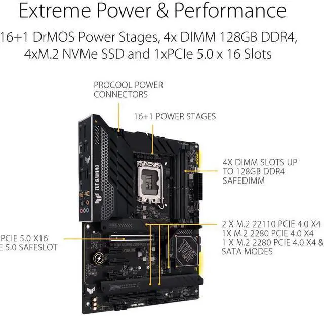 Enhanced Power Solution: 16+1 DrMOS, ProCool sockets, military-grade TUF components, and Digi+ VRM for maximum durability and performance