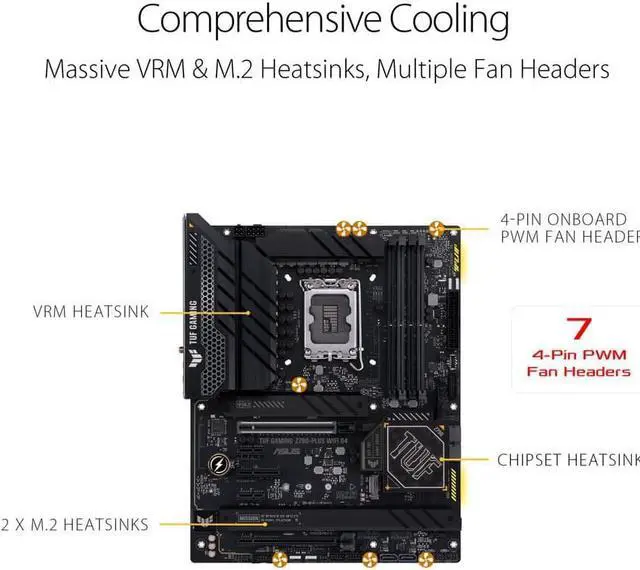 Comprehensive Cooling: VRM heatsink, PCH fanless heatsink, M. 2 heatsink, hybrid fan headers and Fan Xpert 4 utility