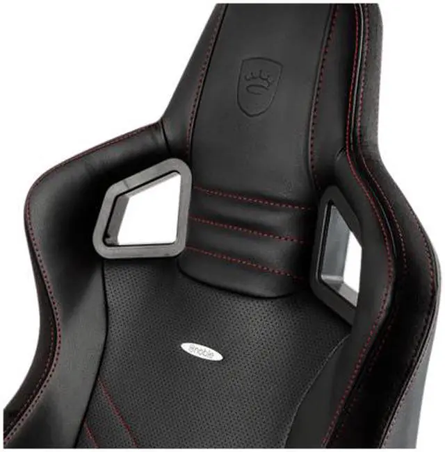 The sheer attention to detail that went into the development of the noblechairs EPIC is demonstrated in the design itself: an attractively embossed logo adorns the headrest and an elliptical aluminum emblem complete with attractive lettering.