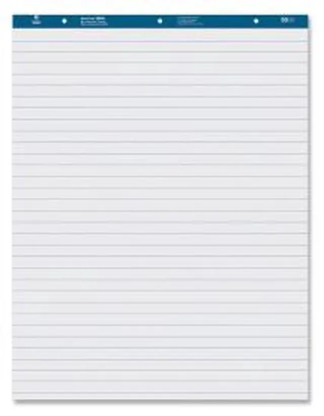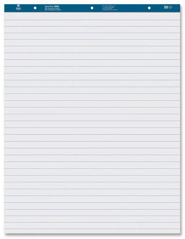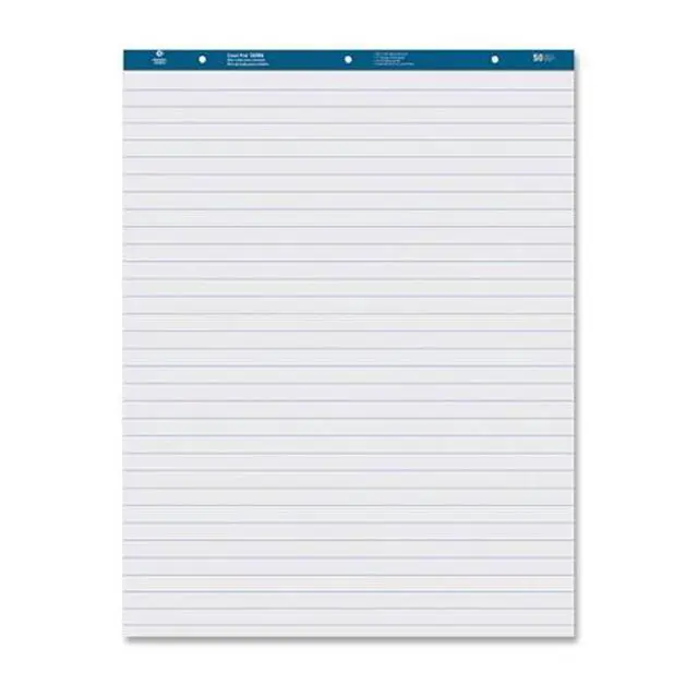 Standard easel pad contains 50 sheets of ruled, perforated, white 15 lb. paper. Pad binding has punched three holes, 8-3/4" c-c.
