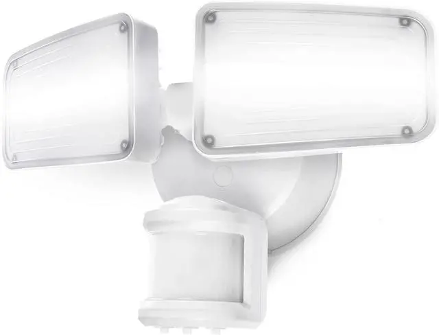 Equipped with two ultra bright LED light heads featuring energy saving standby brightness of 150 lumens and ultra bright 3,000 lumens brightness with motion detection of 5000K white light, this outdoor motion sensor light is a reliable, long-lasting solution for additional home security throughout the night.