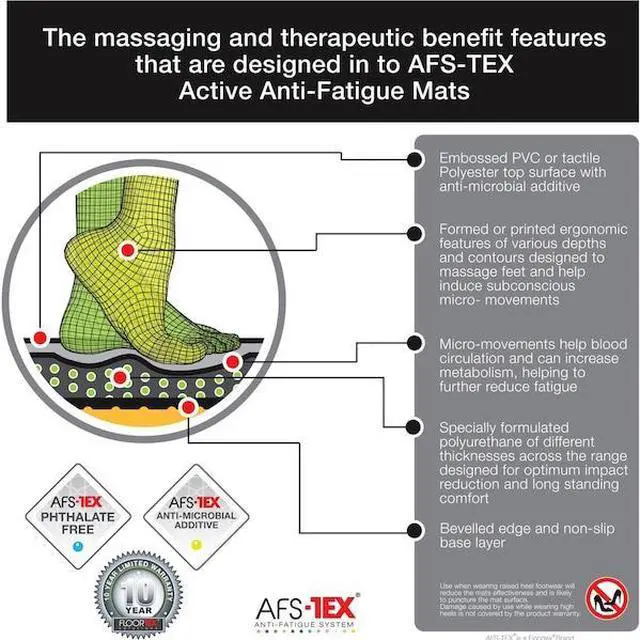 Floortex AFS-TEX 3000 Black Active Anti-Fatigue Mat 20" x 39" - 0.8" Thickness - Rectangular - Polyester, Polyurethane - Black - FCA32039BM