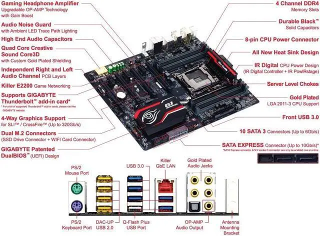 Gigabyte GA-X99-GAMING 5P Intel LGA X99 2011-v3 Extended ATX M.2 Desktop Motherboard A