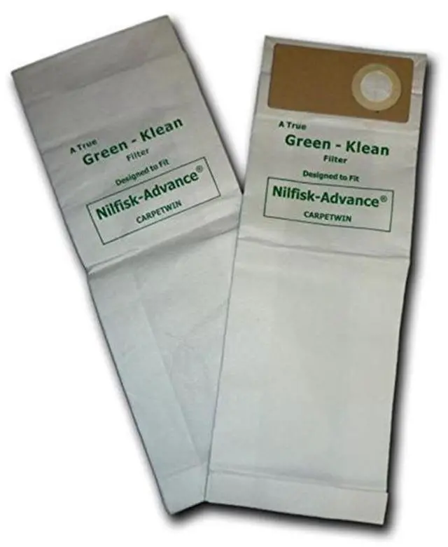 Nilfisk Carpetwin (14/18 Model) Replacement Vacuum Bags (10/10 Packs Per Case) Green Klean Replacement Vacuum Bags Use The Highest Quality Micro-Plus Filter Media Including Melt-Blown Inner Liner In Order To Achieve Filtration Efficiencies Up To 99.9 %. Designed Specifically For Commercial Use- They Are Always Equal To- Or Exceed Oem Quality. Better Filtration Means Cleaner Air- Less Dusting- Longer Secondary Filter Life- At Considerable Savings. Features Each Bag is Printed to Easily Identify The Vacuum It Fits Designed Specifically for Commercial Use Better Filtration Longer Secondary Filter Life 10 per Case Case of 10Specifications