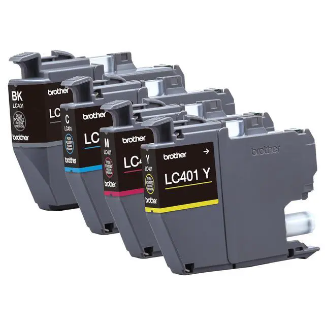 Always trust Brother Genuine ink for superior inkjet print quality and performance you can consistently rely on. Brother Genuine LC401 4PK Standard-yield Color Ink Cartridges deliver consistent, professional print quality and ultra convenience with an up to 200-page yield per cartridge(1). This 4-pack bundle contains one cartridge each of Black, Cyan, Magenta, and Yellow ink. Brother Genuine ink is intelligently engineered to work seamlessly with your Brother inkjet printer for consistent, reliable results. Brother Genuine LC401 4PK is for use with the following Brother all-in-one color inkjet printers: MFC-J1010DW, MFC-J1012DW, and MFC-J1170DW.