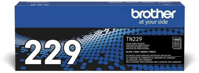 Print confidently with Brother genuine TN229 standard yield toner cartridges. Brother genuine is the only toner brand recommended for Brother multifunction and all-in-one digital color printers. It produces rich, sharp tones on every page while providing reassuring compatibility. Delivering consistently reliable results and effective page yields, Brother genuine toner is the trusted choice for creating professional, laser-quality business documents that demand attention and get noticed. Take the guesswork out of paperwork. Device Types: Laser Printer; Color(s): Black; Page-Yield: 1,500; Supply Type: Toner.