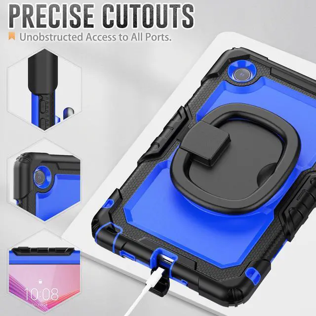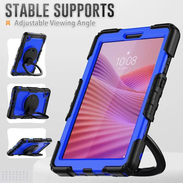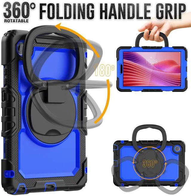 Case for Lenovo Tab One 8.7 inch 2025 / Tab K9 8.7" 2025 TB305XU TB305FU, Shockproof Hard Duty Case with Screen Protector + 360 Rotating Hand Strap & Stand + Shoulder Strap Blue
