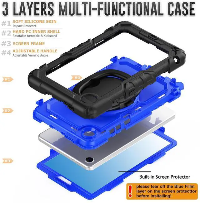 Shockproof Case & Bulit-in Screen Protector : This tablet case is designed with durable anti shock material, with soft silicone edge, hard plastic shell and built-in screen protector. The sturdy case can keep your tablet safe from shock, drop, scratch or accidental damages in daily use.