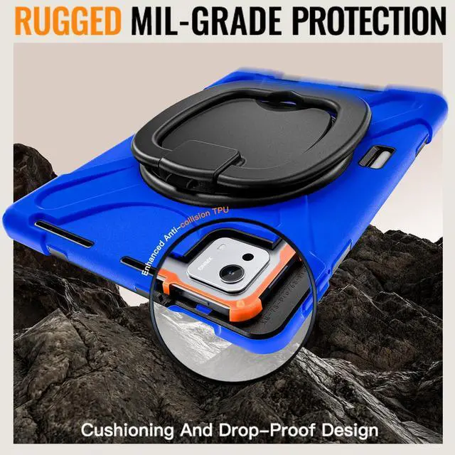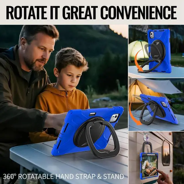 360° ROTATABLE STAND & HAND STRAP - 360°Rotatable foldable stand offers multiple angles for enjoying the most comfortable keyboard-typing, movie-viewing or draw. This sturdy kickstand can be folded when you don't need it. Ergonomically 360°Rotatable adjustable hand strap makes you hold or use your tablet easily in all directions, adjustable velcro hands strap allows big hand and small hand, perfect for kids and adults.
