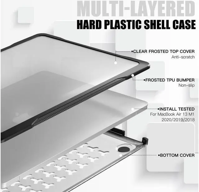 1. Case Only Compatible with MacBook Air 13 inch 2022 2021 2020 2019 2018 Release (model: A2337/A2179/A1932). Made from frivolous high Quality PC Material, good heat dissipation performance. Prevent Fingerprints, Slipping, Scratches, Drops, Dirt, Smudges and Other Damages Efficiently.