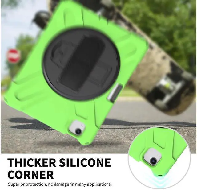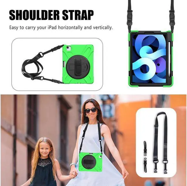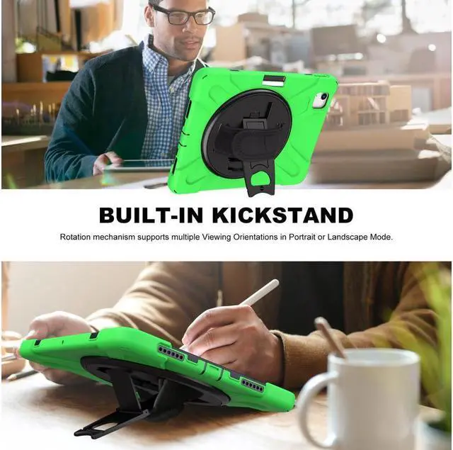 360 ° swivel stand and hand strap --- Placed on the back of iPad Air 5/Air 4 10.9, shockproof case, built-in 360 degree swivel stand and adjustable hand strap with handle make for a more flexible and comfortable way to use your tablet while working , study or travel, perfect for students, teachers, engineers, cashiers and waiters etc.