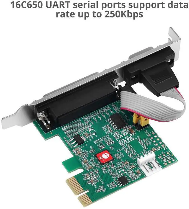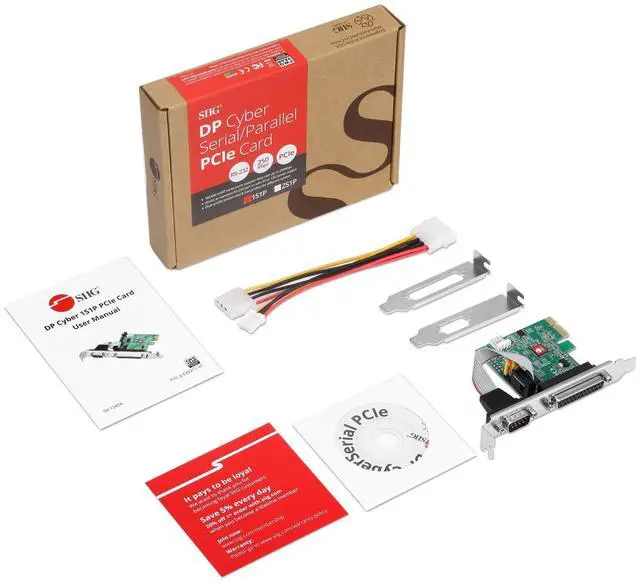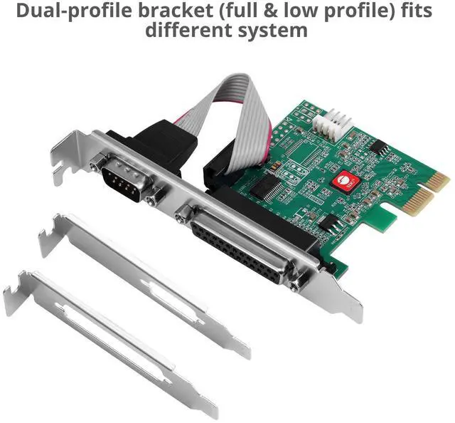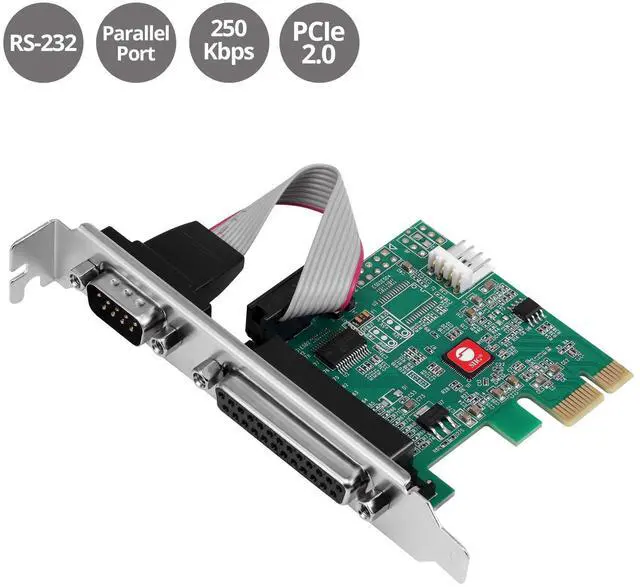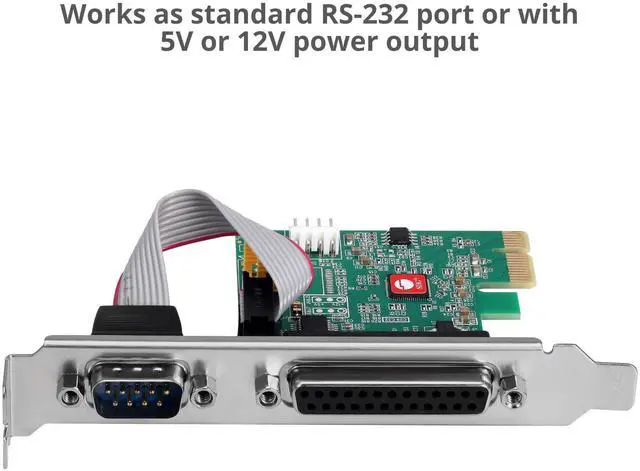 Adds one RS-232 serial port and one parallel port to a PCI Express enabled system
