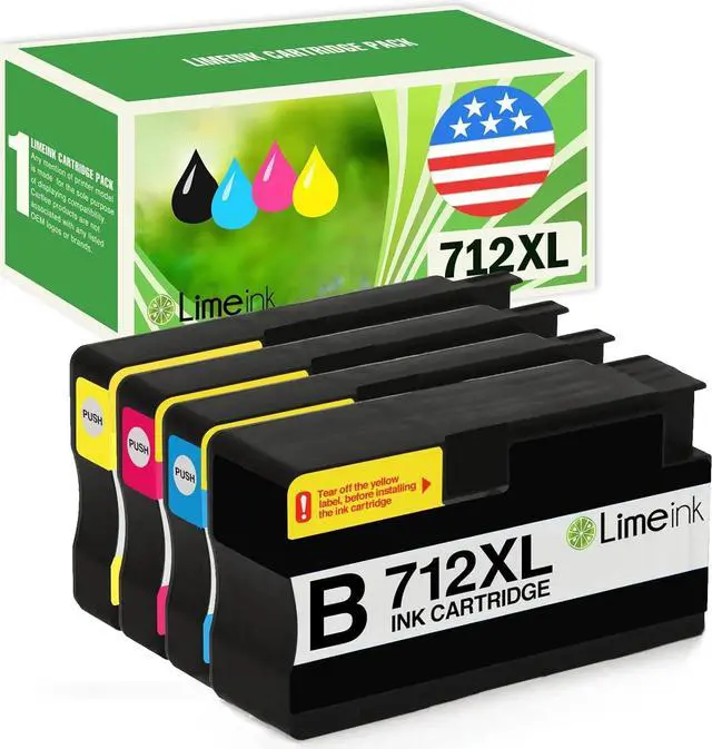 Included: 4 Pack 712 XL cartridges (1 Black, 1 Cyan, 1 Magenta, 1 Yellow)