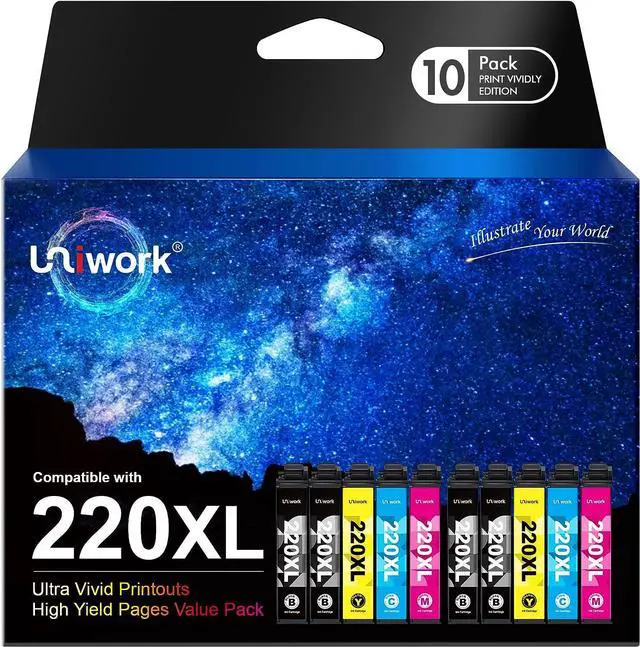 • Uniwork 10 Pack Remanufactured Ink Cartridges Replacement for Epson 220 XL 220XL T220XL Ink Cartridges