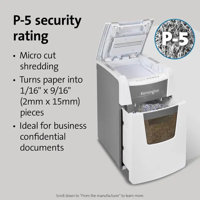 P-5 SECURITY RATED MICRO CUT SHREDDING TURNS PAPER INTO 1/16INCH X 9/16INCH (2MM