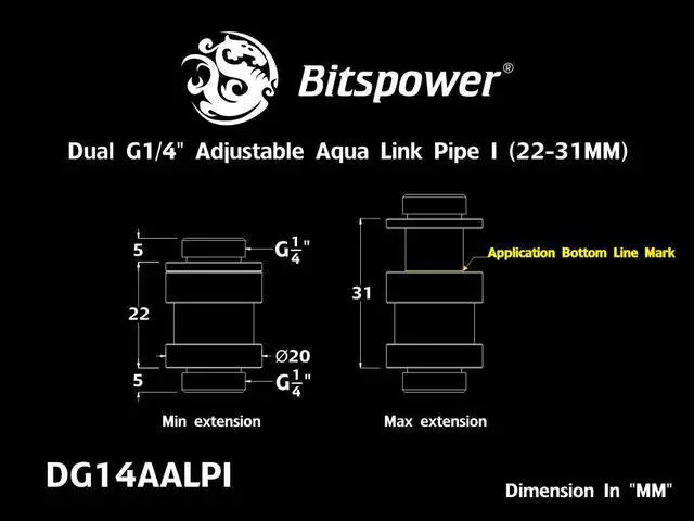 • Carbon Black Dual G1/4" Adjustable Aqua Link Pipe I (22-31MM)