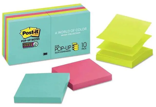 Post-it Pop up Note Dispensers are always there when you need to capture great ideas. This pack includes a black base dispenser with a clear top and 12 pads of bright Post-it Pop up Notes. Specially designed for Post-it Pop up Note Dispensers, these accordion style notes pop up one at a time. Use for notes or reminders to yourself or others. 1 Dispenser, 12 Pads/Pack, 90 Sheets/Pad. Holds 3 in x 3 in Dispenser Notes, Black Dispenser with Clear Top Post-it Dispenser Note Dispensers are always there when you need to capture great ideas Specially designed dispenser stays in one place to keep your desk organized Download the free Post-it App.