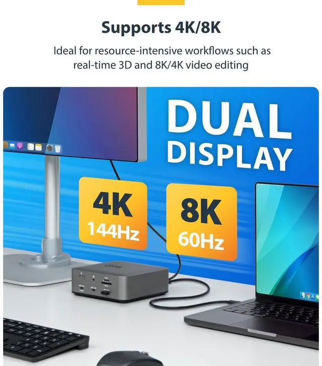 - NEXT-GEN PERFORMANCE: Achieve full Thunderbolt 5 capabilities with 80Gbps bandwidth, boosting up to 120Gbps for display-intensive tasks; Deliver up to 240W charging to high-performance laptops and support dual 8K 60Hz displays over a single connection