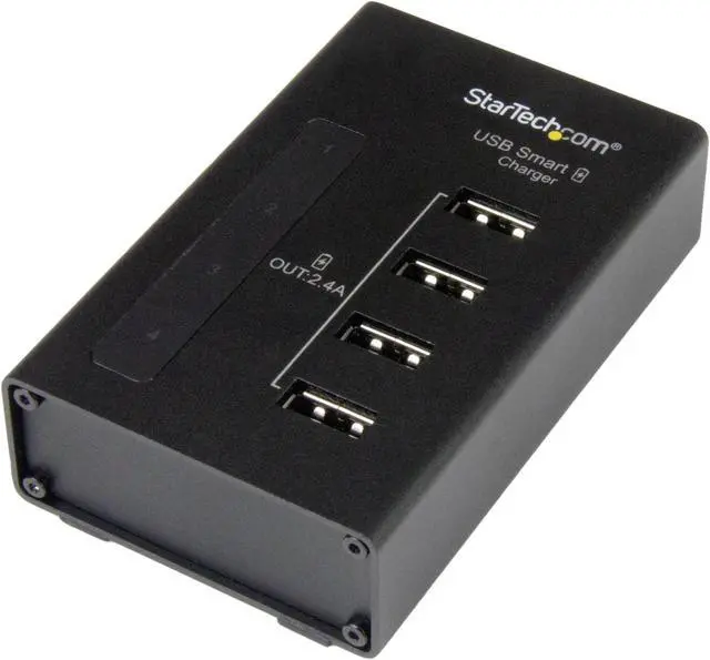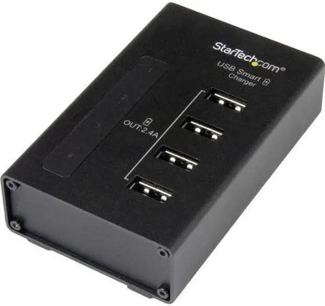 The USB charging station features built-in safety measures to ensure that all of your devices are protected against damage from overheating, overvoltage, overcurrent or short circuiting. If the 96-watt limit is exceeded, the power being sent to the connected devices will turn off and the charger will reset itself until the load is reduced to safe levels. Plus, the charging station includes an internal fan which controls the temperature of the device in order to prevent overheating. The fan is automatically controlled to reduce noise levels.