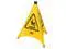 The Rubbermaid Commercial Pop-Up Safety Cone with Multi-Language Imprint and Wet Floor Symbol is collapsible and automatically deployed. The caution sign features the universal wet floor symbol and the word caution imprinted in English, French and Spanish for effective communication to broad audiences. The caution cone is durable, yet folds compactly when not in use. The plastic cone features a wall-mounted storage tube that allows for easy and compact storing. The bright yellow design meets OSHA requirements while the multilingual graphics are ANSI compliant. Made from durable materials, this safety sign can withstand serious abuse. Depicted Text: Attention; Caution; Cuidado; Width: 21"; Depth: 21"; Height: 20".