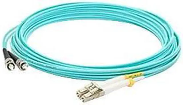 THIS IS A 1M LC (MALE) TO ST (MALE) AQUA DUPLEX RISER-RATED FIBER PATCH CABLE. A