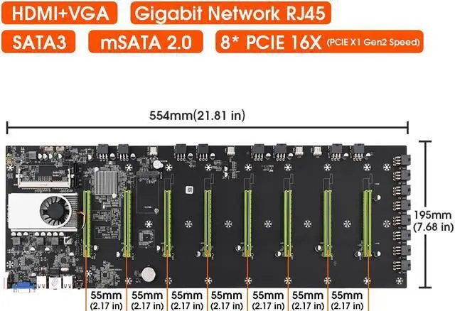 • 8*PCIE 16X Graphics Card Slots,55mm Spacing.
