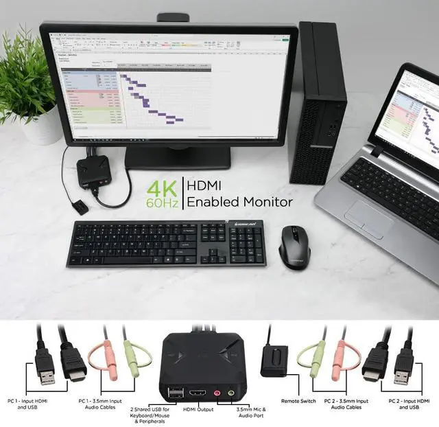 • 2-Port 4K KVM Switch with HDMI, USB and Audio Connections