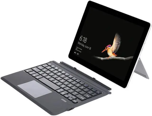 Discription Exclusive design for Microsoft Surface Go 10 inch 2018, with slightly spread out keys for a more familiar and efficient typing experience that feels like a traditional laptop. Built-in two-button trackpad gives you the touch screen experience, without having to take your hands off the keyboard. About the operation of trackpad, please refer to the user manual. Built-in 220mAh rechargeable lithium battery provides about 200 hours of effective usage time, extra long standby time up to 90 days per full charge. This Blutooth keyboard requires you to charge it via USB cord and connects via Bluetooth.
