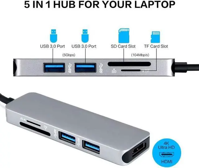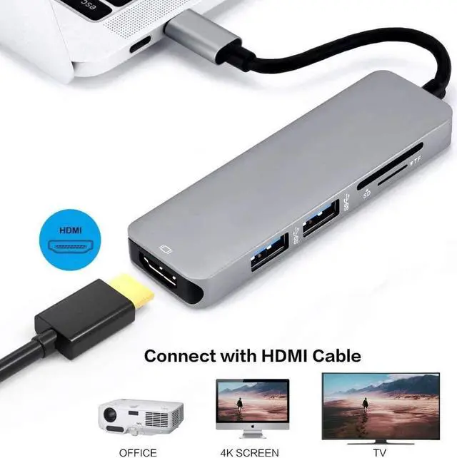 USB-C to HDMI with 2 USB 3.0 ports & SD/TF card reader adapter for all new MacBook/MacBook Pro /2016/2017/2018