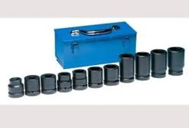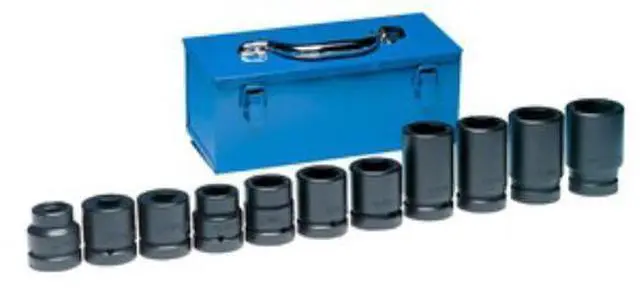 Impact Socket Set, 1" Drive, 11 Piece, 17, 20, 21mm Square, 35, 36, 38, 41mm Deep, 27-33mm Short