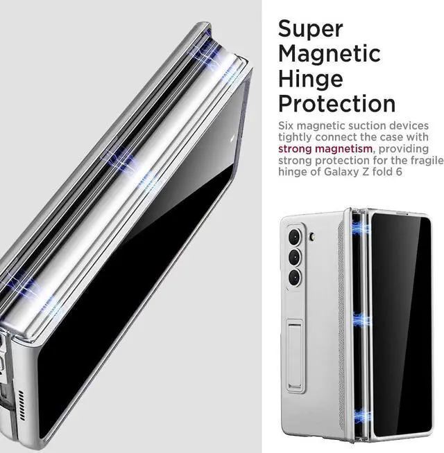 Super Magnetic Hinge Protection --- The Samsung Galaxy z fold 6 case with hinge protection has Eight Magnetic adsorption devices that hold the top and bottom covers of the Fold 6 tightly together through strong magnetic field adsorption technology, protecting the hinge of Fold 6 at all times.