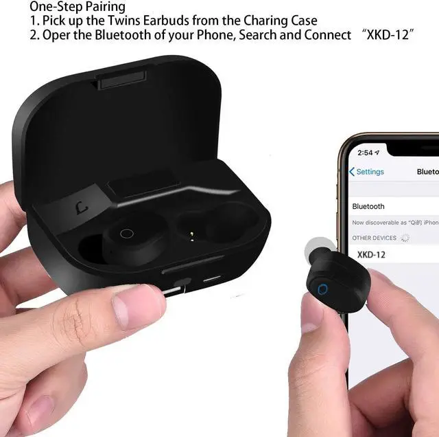Open to Pair: Open the lid, the earbuds will auto turn on and pair to your Bluetooth device