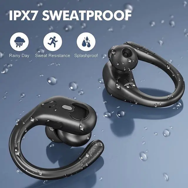 Ture Wireless Earbuds, Bluetooth Headphones 60Hrs Playback with LED Diaplay Wireless Charging Case Noise Cancelling Headset with Earhooks, IPX7 Waterproof Over Ear Earphones for Sports Running Workout