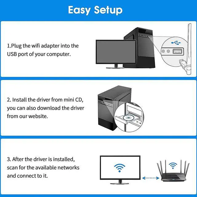Before plugging the USB Wifi Dongle into the usb port, please FIRST install drivers via MINI CD disc, or download driver from a link to install. Once you've run the software, you can simply insert Wireless Dongle to get connected.