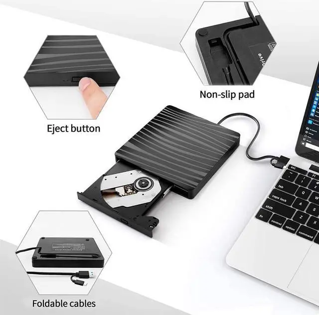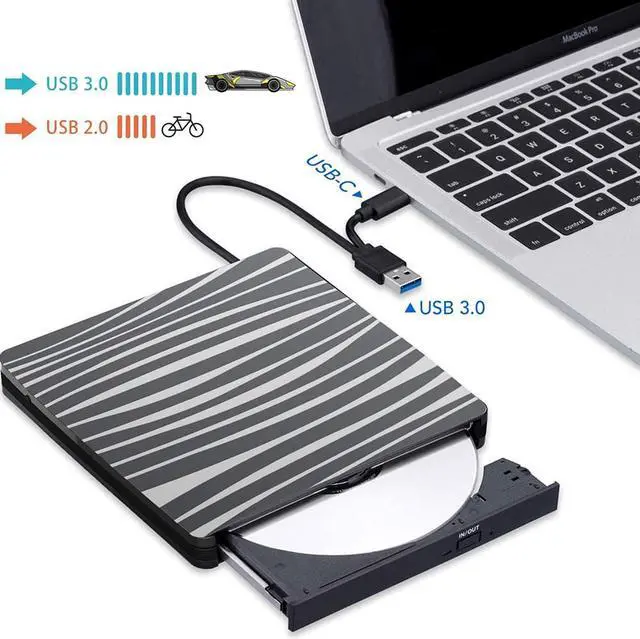 Apple Maxbook Type-C interface. The disc must be ejected from the computer. Blue Ray format is not currently supported.