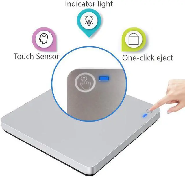 Manual Notes: 1. This external USB type C dvd drive is a Slot-in drive, not a Pallet drive, just slot-loading, with touch eject button. Or automatically pops up your disc when clicked the "Eject button"on the computer after use 2. Please hook up the device to the direct USB type C port on your computer If you connect it to a USB hub or extension cords, it maybe cannot recognize the Driver 3. Keep the machines steady on the desktop, do not put it unstable items 4. Do not put the machines on the vulnerable to squeeze place, to ensure normal machine use 5. Data transfer speed is also affected by computer and system environment