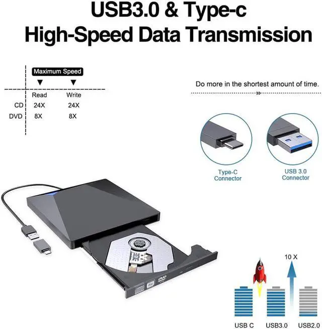 Updated New Version USB 3.0 & Type C External CD DVD Drive with High Speed